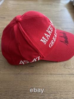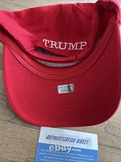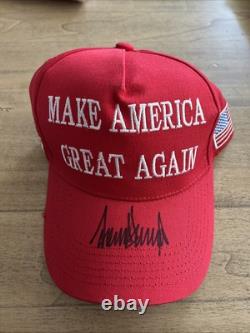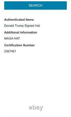 The product is a hand-signed autograph of President Donald Trump's MAGA hat, featuring a hologram COA authenticating the signature. This collectible item falls under the Presidential industry and political category, making it a unique and valuable piece for fans or collectors of political memorabilia. The authenticity of the signature adds to the appeal of this original autographed item, showcasing a piece of history from the presidency of Donald Trump.