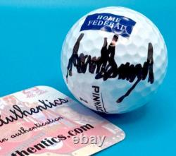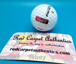 BALLE DE GOLF SIGNÉE PAR DONALD TRUMP - Pinnacle - Certificat d'Authenticité et Hologramme de Red Carpet Authentics. Cette annonce présente une balle de golf Pinnacle Soft signée par Donald J. Le 45e Président des États-Unis. La signature est grande, nette et s'étend sur la balle en encre noire audacieuse. Avec un hologramme correspondant (#51486) et un certificat.